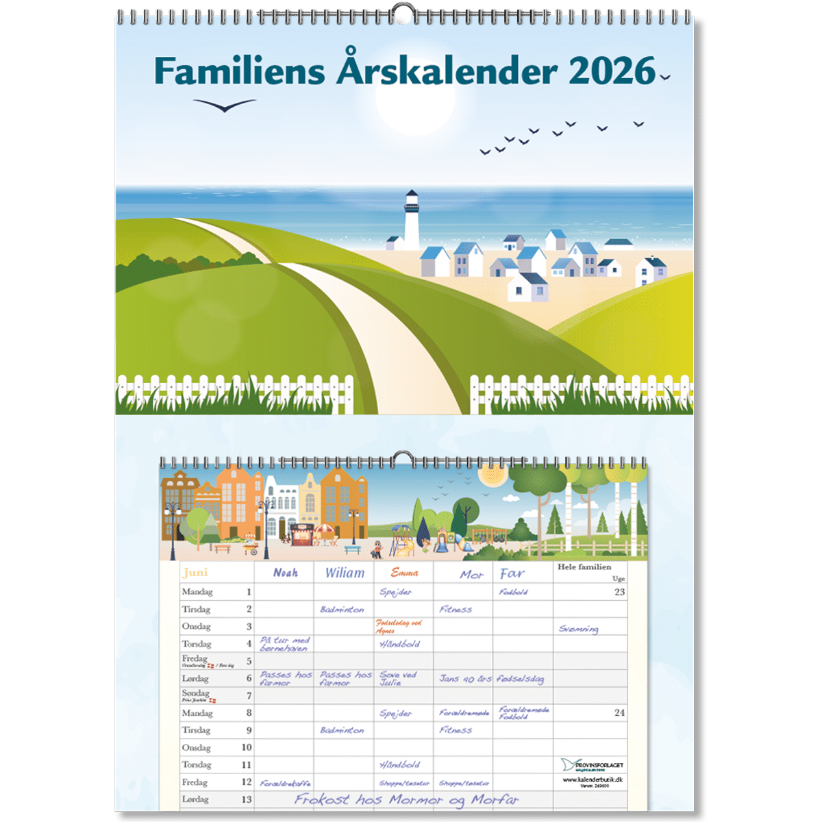 Den store familiekalender i A3 er i størrelsen 29,7 x 42 cm og lige til at hænge op på væggen.