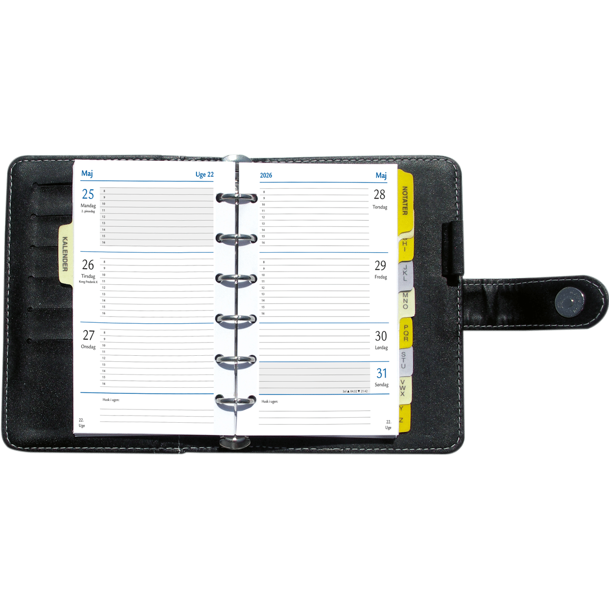 Organizer ugekalender komplet i sort kunstlæder.